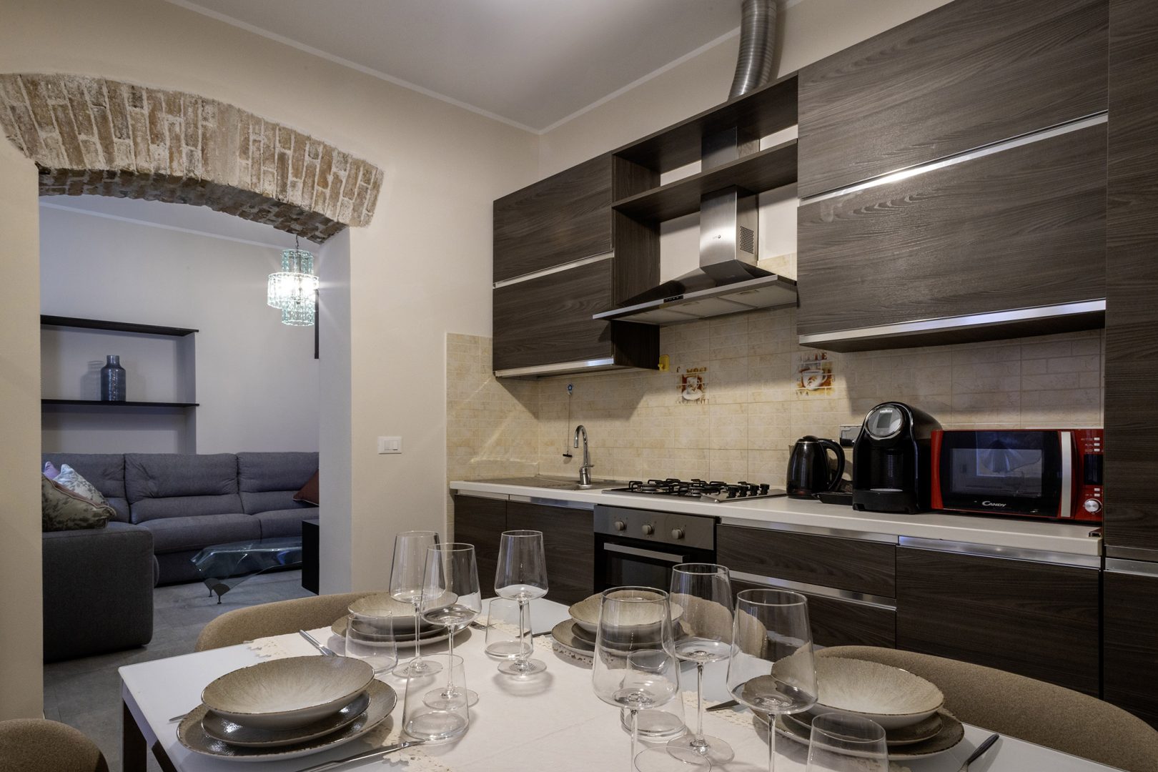 Con forno, microonde, lavastoviglie e macchina del caffè.